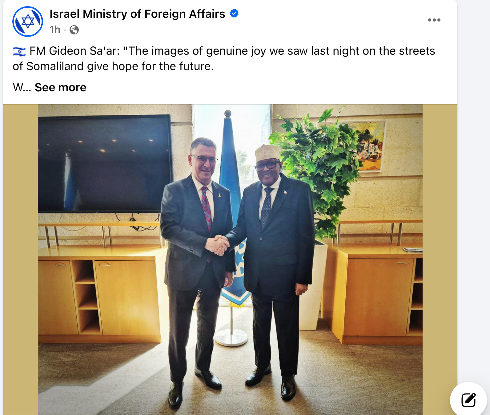 Wasiirka Arrimaha Dibadda ee Israa’iil, Gideon Sa’ar oo qoraal soo dhigay barta rasmiga ee wasaarada arimaha dibada ayaa yiri :-